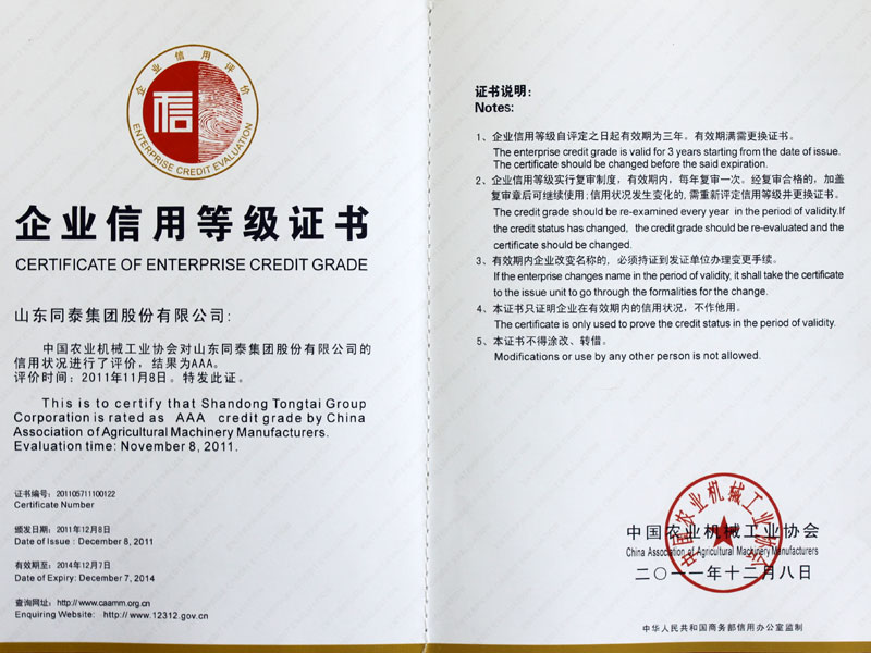 中國農(nóng)機(jī)協(xié)會AAA級信用