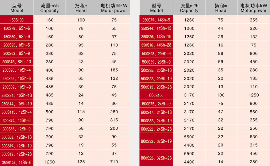 S、Sh系列泵是單級、雙吸、臥式中開離心泵,供輸送清水及理化性質類似于水,不含固體顆粒的液體之用,液體的最高溫度不超過80℃。